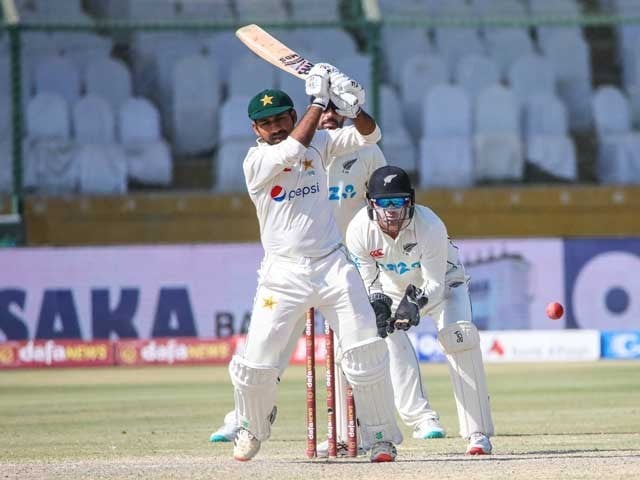 قبل ازیں کھیل کے آغاز پر قومی ٹیم محض ایک رنز کا اضافہ کرسکی، ابرار احمد بغیر کوئی رن بنائے وکٹ گنوا بیٹھے، قومی ٹیم کے مڈل آرڈر بیٹر سعود شکیل 125 رنز بناکر ناقابلِ شکست رہے، انکی اننگز میں 17 چوکے شامل تھے۔ نیوزی لینڈ کی جانب سے آج پاکستان کی آخری وکٹ اِش سودھی کے حصے میں آئی۔